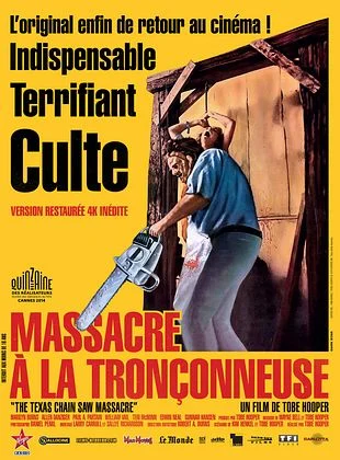Le 18 août 1973, au fin fond du Texas, cinq amis traversent la région à bord d’un van. Ils croisent en chemin la route d’un auto-stoppeur et décident de le prendre à bord… « D’une maniaquerie et d’un perfectionnisme rare, Massacre à la tronçonneuse représente une date, l’archétype du film inoubliable qui saisit toujours autant malgré les visionnages à répétition. Une œuvre dure et brutale qui traverse les décennies sans perdre de sa force. » (dvdclassik.com)